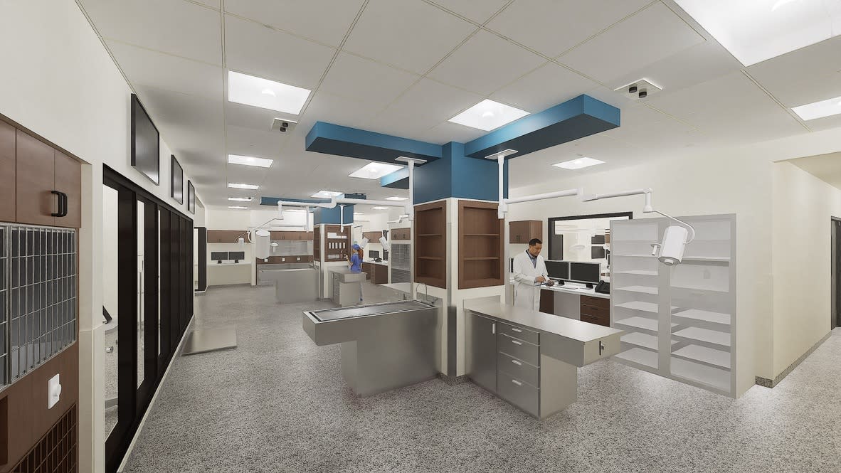 Scheduled to open in August 2026, the new Veterinary Medical Center will span a modern, purpose-built facility designed to support a wide range of services including advanced diagnostics, 24/7 emergency care, and multi-species treatment capabilities. The building will feature 14 consultation rooms, a rapid triage/trauma room, a dedicated ICU, specialized feline and exotics wards, an oncology suite, a cardiac unit, and an internal medicine unit. Additionally, the facility will house a CT scanner, advanced diagnostic imaging, three state-of-the-art surgical suites equipped with video capture and streaming capabilities, dedicated educational and teaching areas, and a convenient drive-through pharmacy.