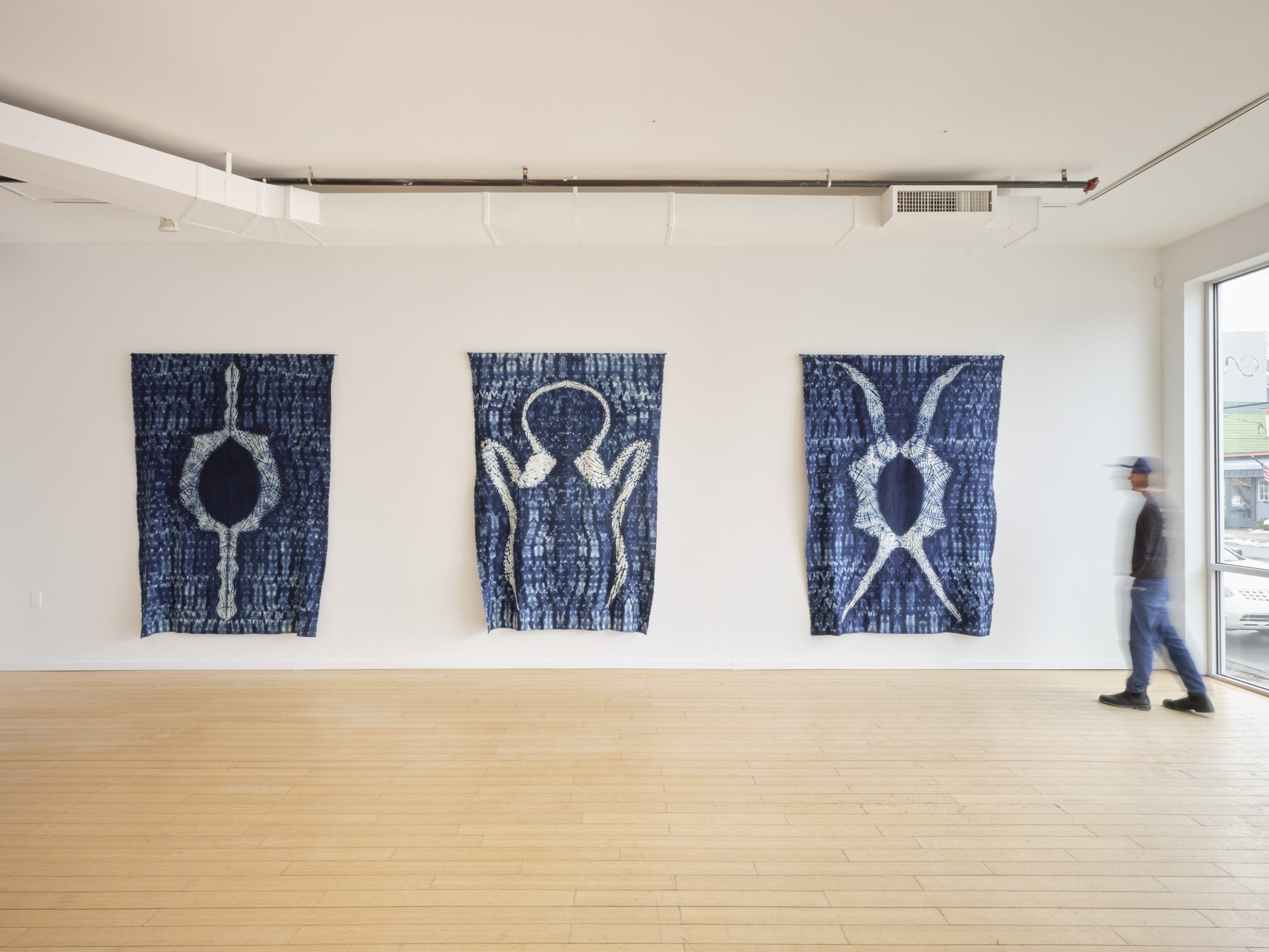 Davana Robedee centers her practice on experiences of visual aura, lucid dreams, and hallucinations, questioning the nature of consciousness and perception. Working with indigo she grows in her own dye garden, Robedee uses meditative stitch-resist shibori as a drawing tool. Her process is indirect and intuitive, as she guides and coaxes her marks, allowing images to slowly emerge. The resulting works function as metaphors for the liminal space between thought and matter, dream and waking life.