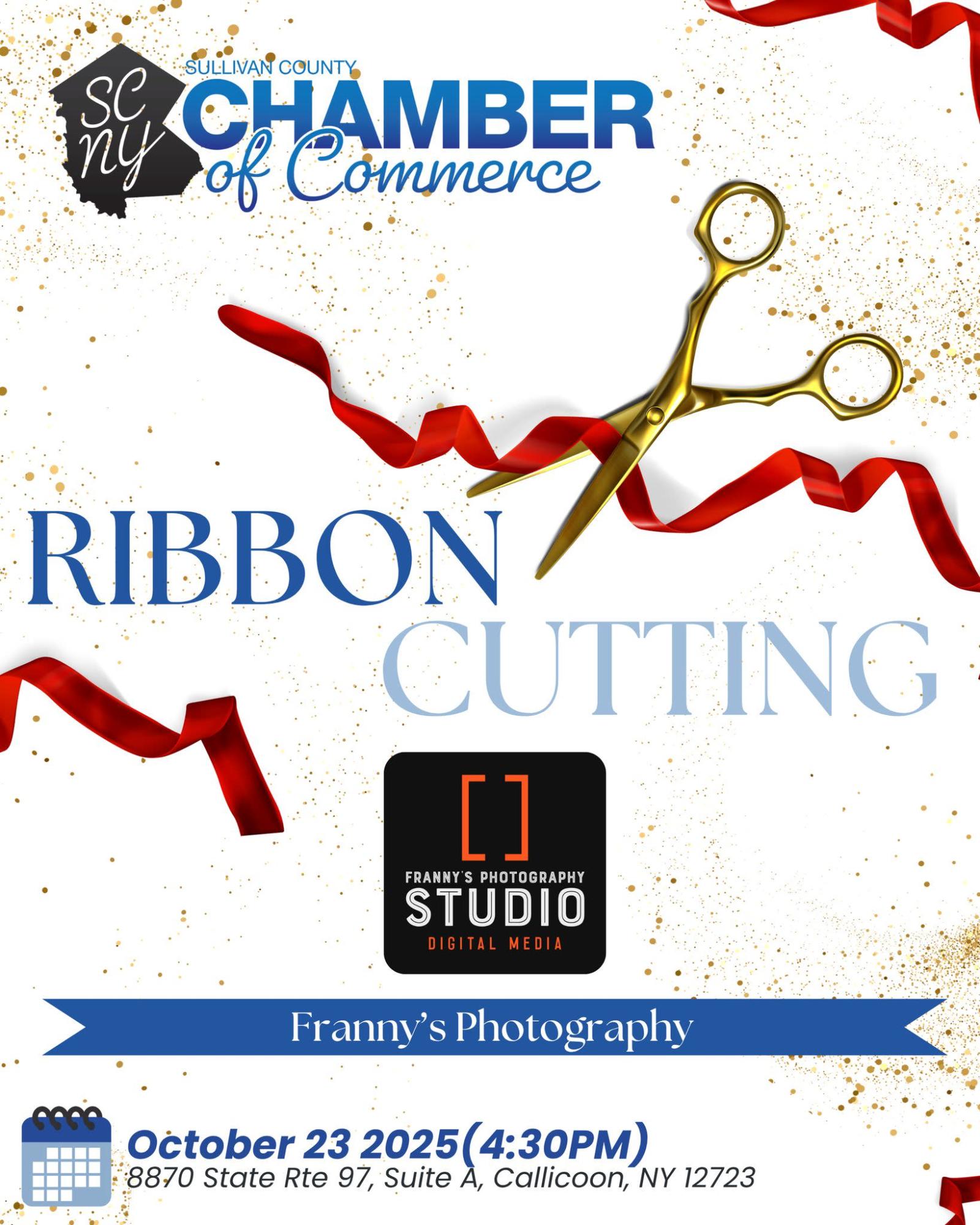 Monticello NY, - The Sullivan County Chamber of Commerce is thrilled to welcome the community to a Ribbon Cutting Celebration for Franny’s Photography Studio, marking the grand opening of their new Callicoon location.