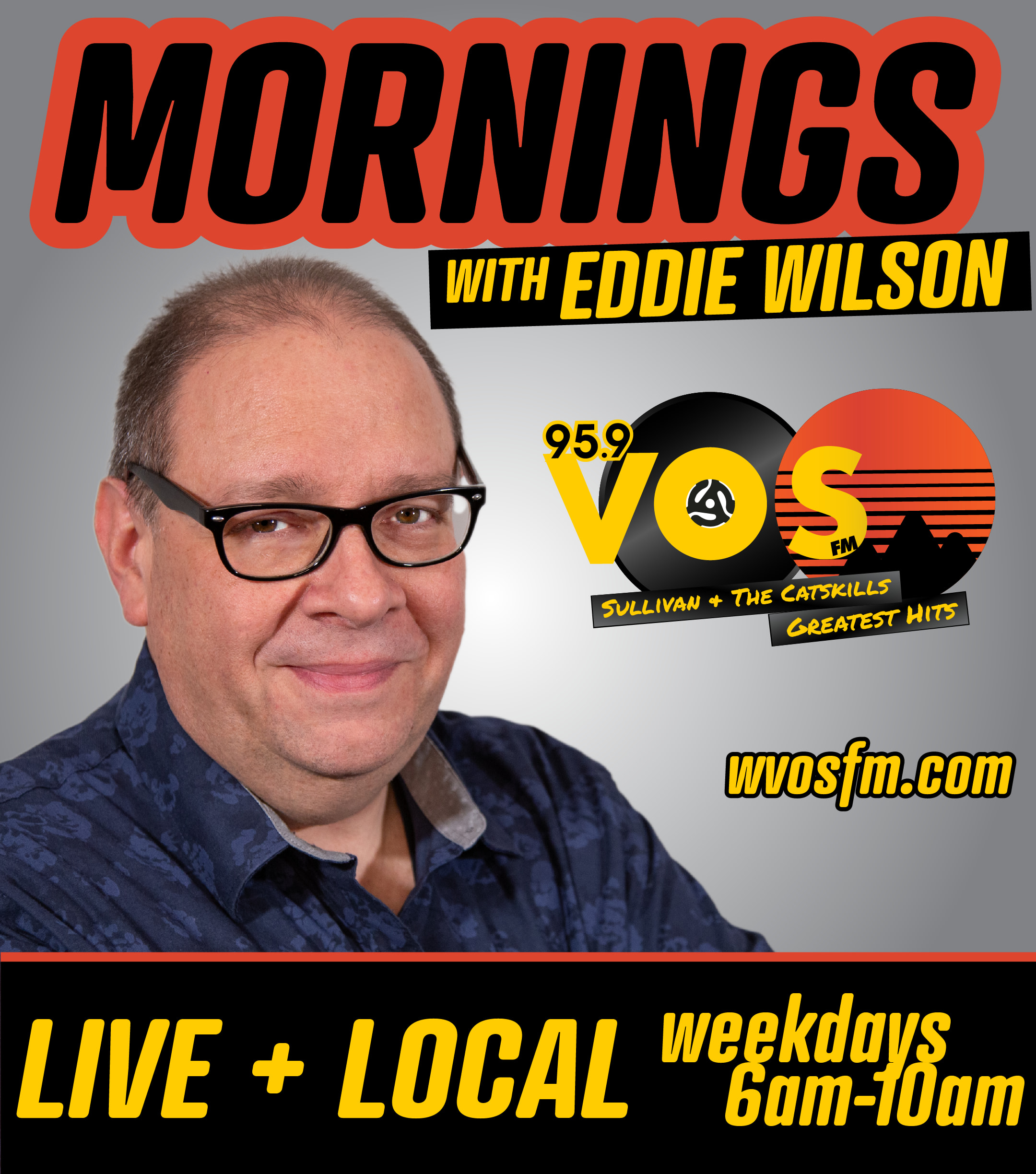 Since December 2011, Wilson has been part of the team at 95.9 VOS-FM, where he currently serves as morning host, while also contributing to production and public service programming. Known for his fun personality, creative song montages, and artist tributes. He has become a familiar voice for listeners throughout Sullivan and the Catskills. He is also the co-host of the pop culture podcast “The Marvelists.”